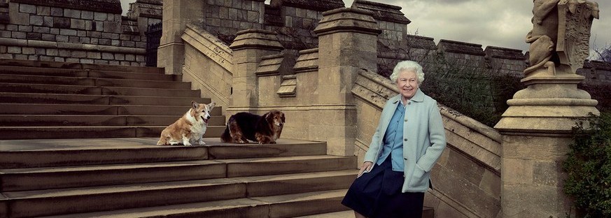 И чем все закончилось. Эта фотография сделана на девяностолетие королевы. Сверху вниз: корги Уиллоу, дорги Вулкан, корги Холли, дорги Кэнди.